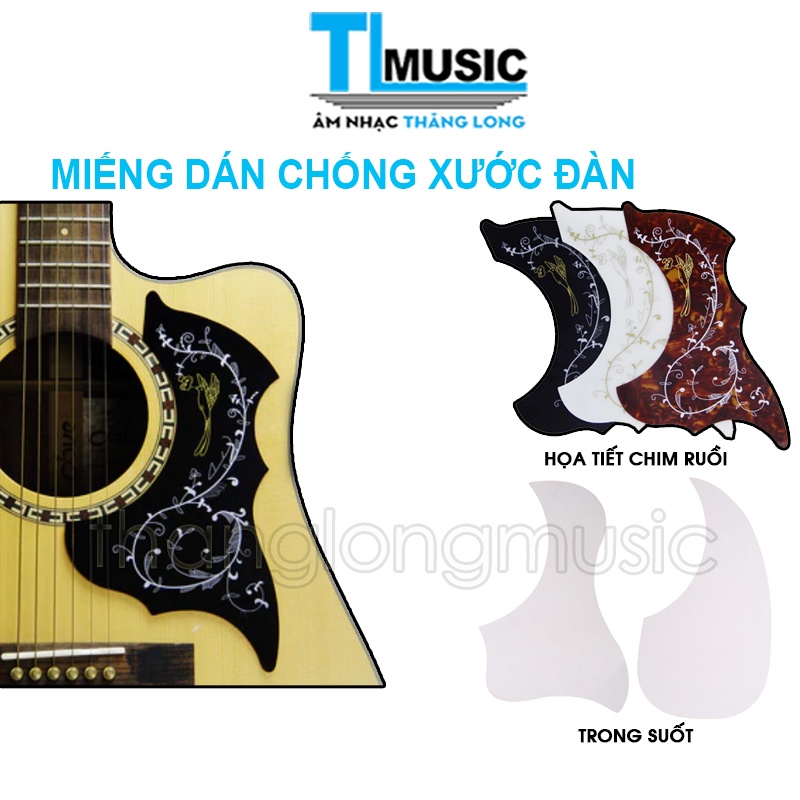 Miếng dán chống xước cho đàn guitar có nhiều hình dáng, thiết kế riêng cho nhiều mẫu guitar.