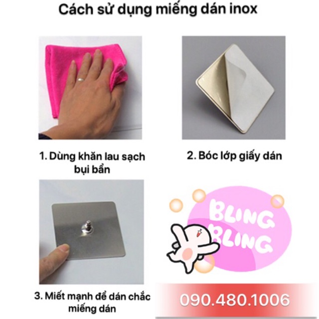 Chất liệu: Inox Siêu bền siêu chắc.kích thước siêu to tăng khả năng bám dính: 7,5cm x7,5cm