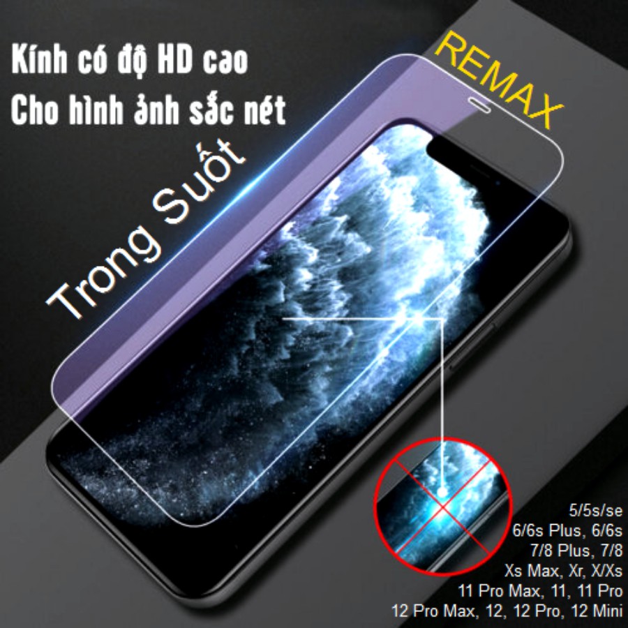Miếng Dán Cường Lực Remax Trong Suốt Bảo Vệ Màn Hình iPhone 13 Pro Max - Mini, 12, 11, X/Xs, 7/8 Plus, 6/6s, 5/5s/se