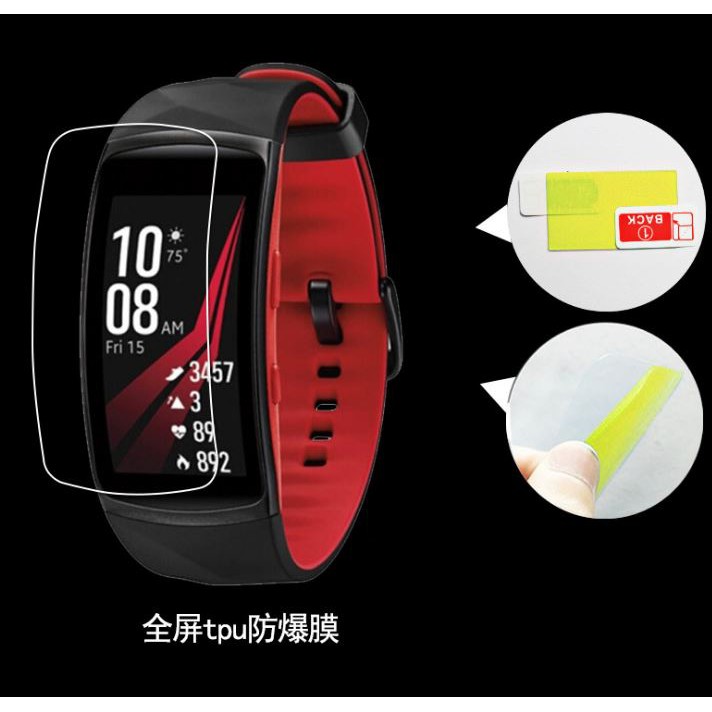 _ Miếng dán vòng đeo tay Gear Fit 2 giúp bảo vệ vòng đeo tay tốt hơn, không bám vân tay, chống tia cực tím, dễ lau chùi._ Đây là loại dán dẻo, không FULL màn hình nhưng khả năng chống chọi cao hơn, bo theo màn hình cong của đồng hồ tốt hơn, nhưng vẫn bảo vệ được đồng hồ