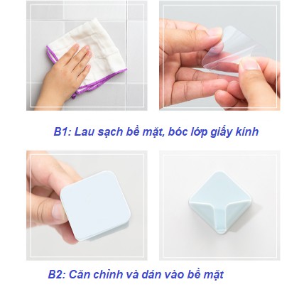 – Lau sạch sẽ, khô ráo chỗ cần dán sau đó dán MIẾNG DÁN DÍNH TƯỜNG lên, ép ghì thật chặt, thật kỹ để đảm bảo độ bám dính rồi sau 30 phút mới treo đồ lên.