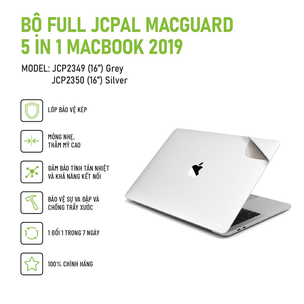 Máy tính & Laptop > Phụ Kiện Máy Tính > Miếng Dán & Ốp Laptop || Bộ miếng dán Full JCPAL 5 in 1 Macbook 2019 - 16 inch chống trầy xước cực tốt, chất lượng caoCòn hàng