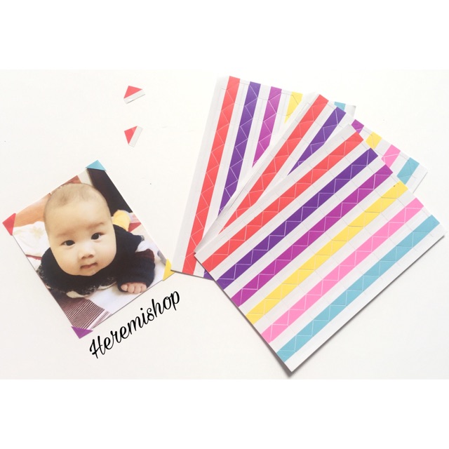Bạn lấy 4 tấm tam giác đưa vào 4 góc của ảnh/thời khoá biểu.... sau đó dán tấm ảnh vào album/tường như hình