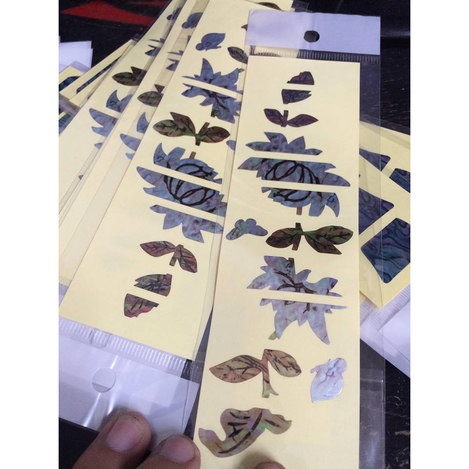 Miếng dán khảm cần đàn, chất liệu sticker cao cấp có nhiều loại để khách hàng lựa chọn mẫu Rồng, hoa lá, hoa sen, chữ thập, hình thang…Giá MCT