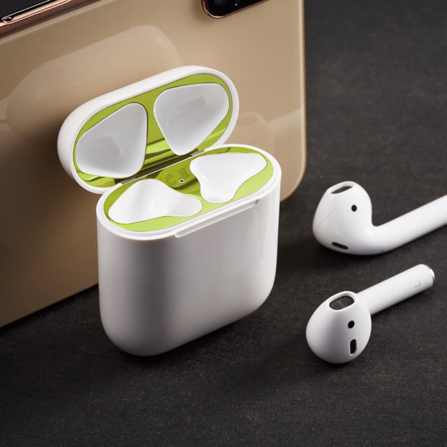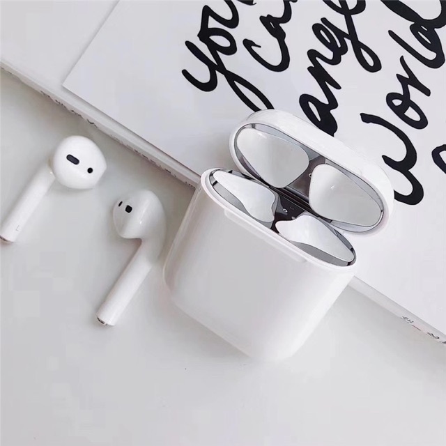 Bộ Dán Kim Loại Chống Bám Bẩn Bảo Vệ AirPods 1 Airpod 2 18K🔴LƯU Ý: không sử dụng chung được với silicon chống trượt tai nghe được nha khách!!!