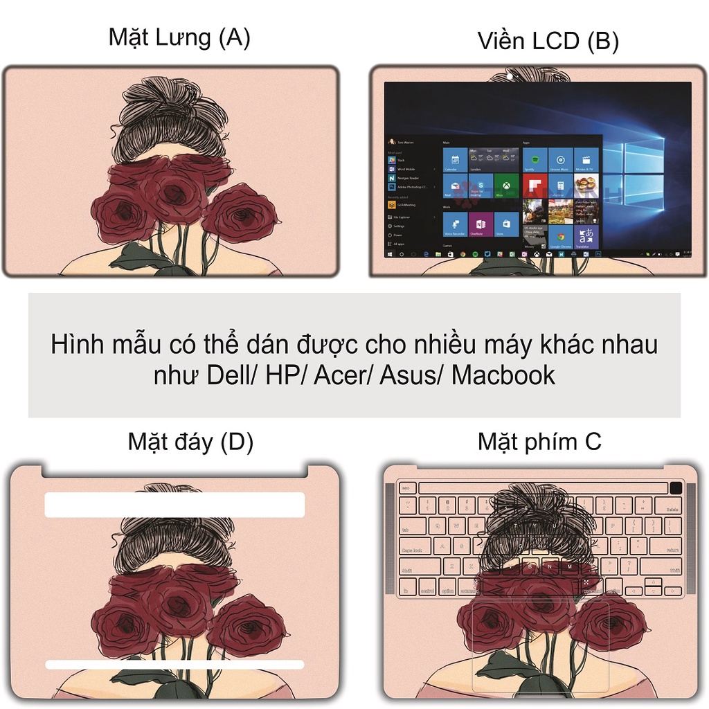 Giới thiệu Miếng Dán Laptop - Mẫu Cô gái bên đóa hoa - Dán cho Dell, Hp, Asus, Lenovo, Acer, MSI, Surface,Vaio, Macbook