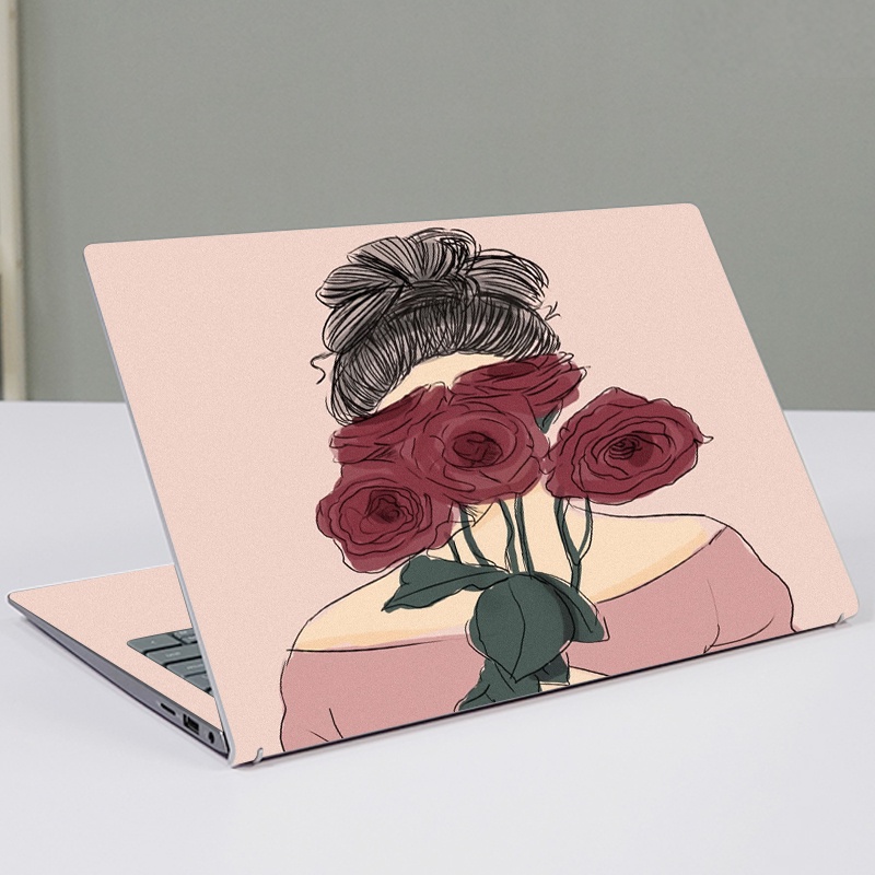 Miếng Dán Laptop - Mẫu Cô gái bên đóa hoa - Dán cho Dell, Hp, Asus, Lenovo, Acer, MSI, Surface,Vaio, Macbook