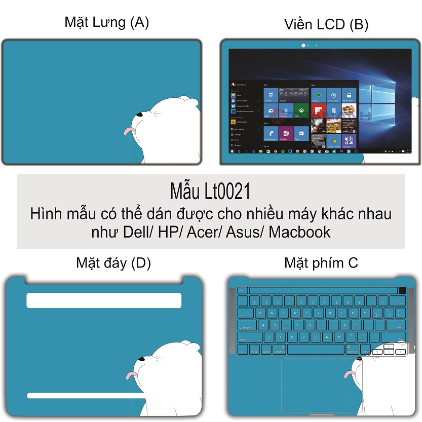 Giới thiệu Miếng Dán Laptop - Mẫu LT021 hình gấu trắng cute - Dán cho Dell, Hp, Asus, Lenovo, Acer, MSI, Surface,Vaio, Macbook