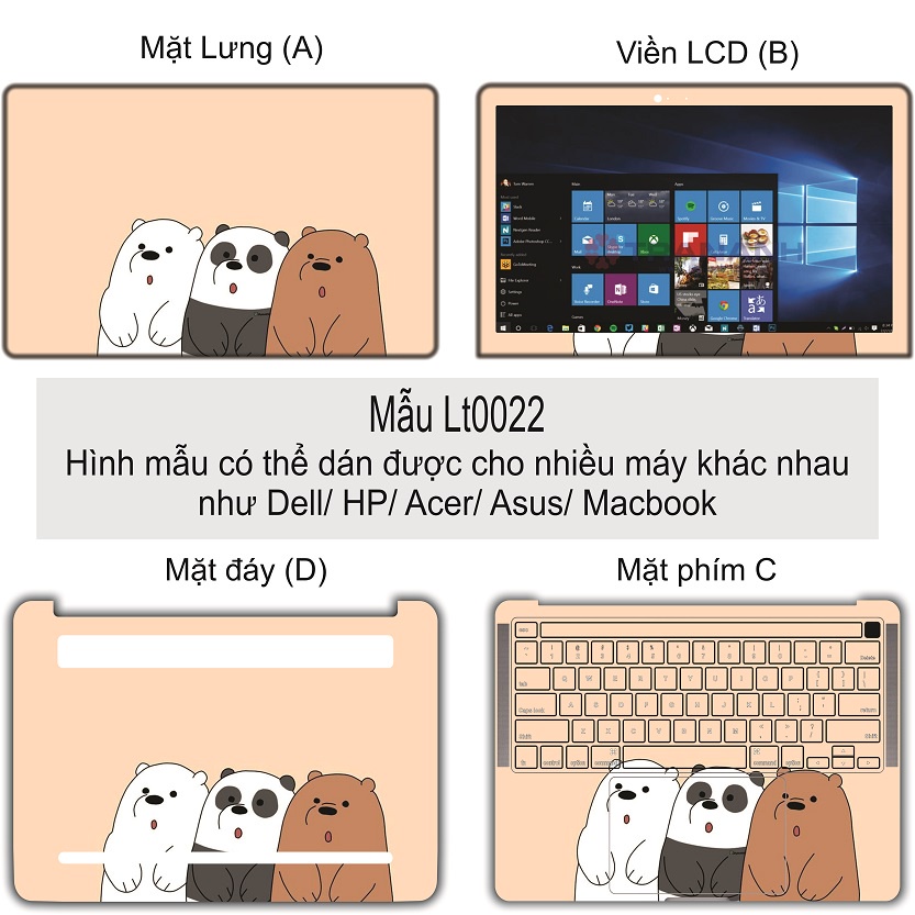 Giới thiệu Miếng Dán Laptop - Mẫu LT022 hình gấu cute - Dán cho Dell, Hp, Asus, Lenovo, Acer, MSI, Surface,Vaio, Macbook