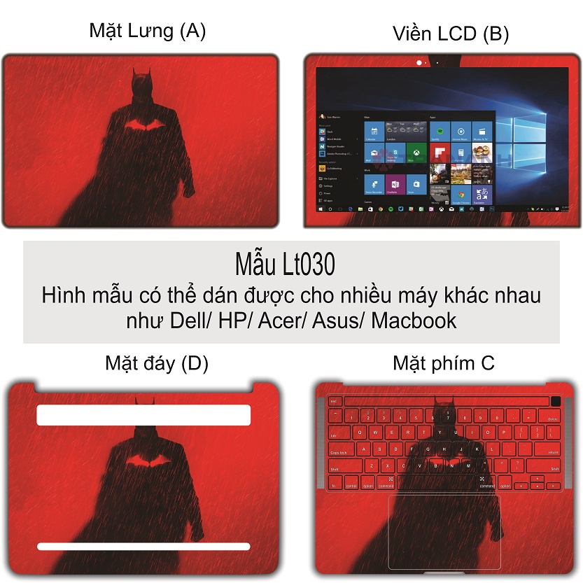 Giới thiệu Miếng Dán Laptop - Mẫu LT030 hình Batman đỏ - Dán cho Dell, Hp, Asus, Lenovo, Acer, MSI, Surface,Vaio, Macbook