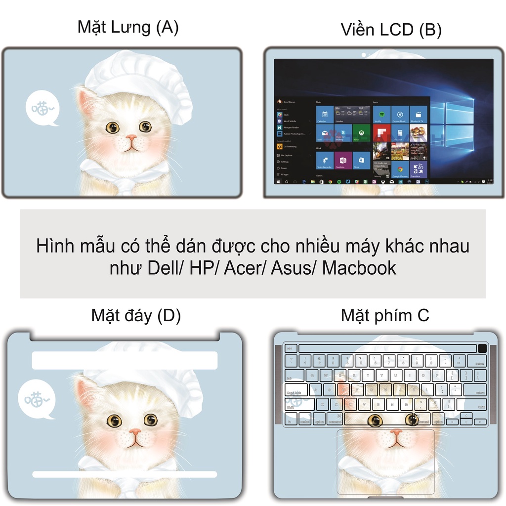 Máy tính & Laptop > Phụ Kiện Máy Tính > Miếng Dán & Ốp Laptop || Miếng Dán Laptop - Mẫu mèo đầu bếp cute - Dán cho Dell, Hp, Asus, Lenovo, Acer, MSI, Surface,Vaio, MacbookCòn hàng