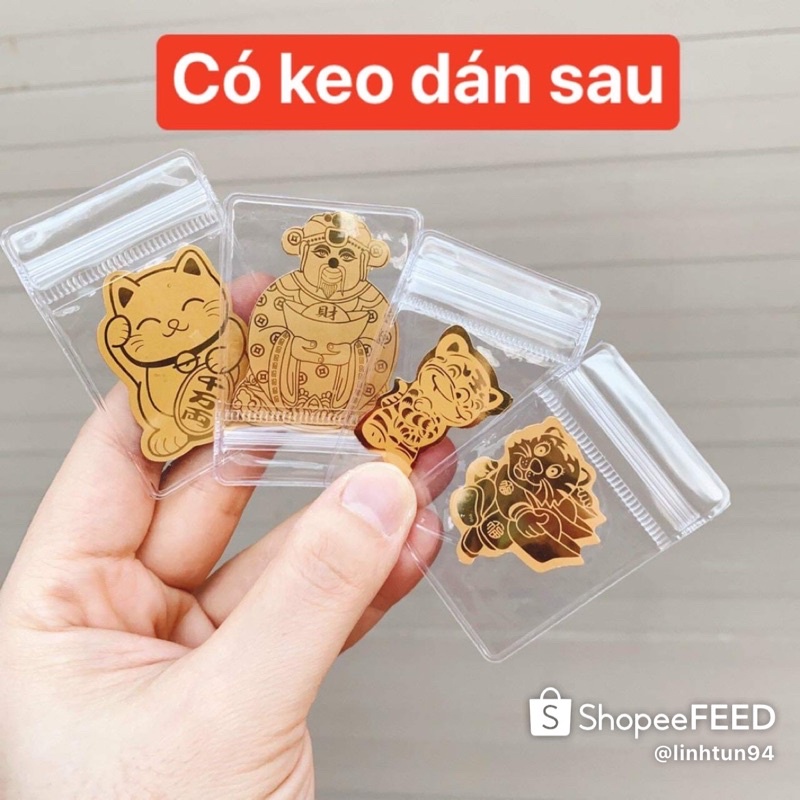 Miếng dán Mạ Vàng Mèo Thần Tài - Hổ Thần Tài - Ông Thần Tài - Tết 2022