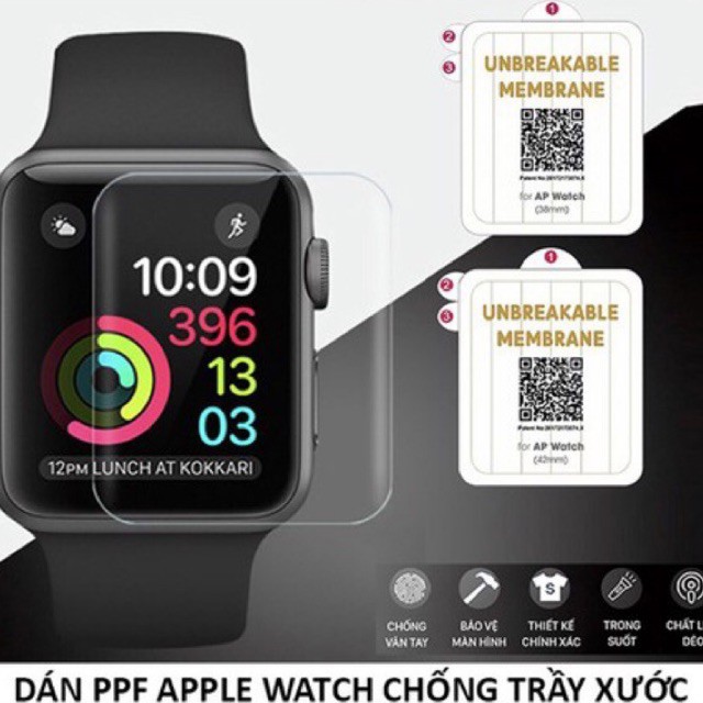 Miếng Dán Màn Hình Đồng Hồ Apple Watch Series 1/2/3/4/5 Các Size 38, 40, 42, 44Cam kết dán PPF Apple Watch chính hãng, bền đẹp, giá RẺ nhất sàn. Miếng dán PPF Apple Watch cực RẺ mà chất lượng tốt được bày bán tại
