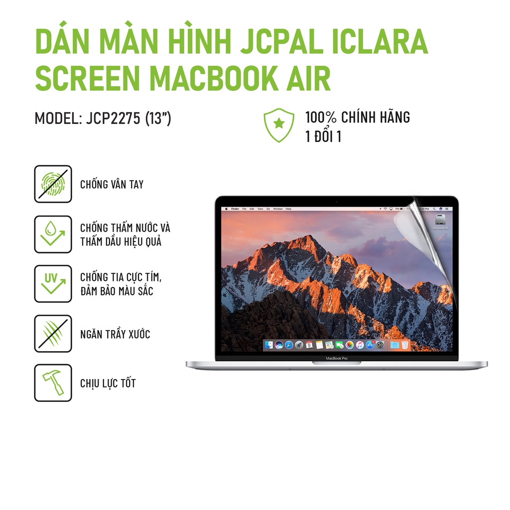 Máy tính & Laptop > Phụ Kiện Máy Tính > Miếng Dán & Ốp Laptop || Miếng dán màn hình JCPAL Iclara screen Macbook Air chống chói, chống bụi, bám vân tay tốt, chống thấm nướcCòn hàng
