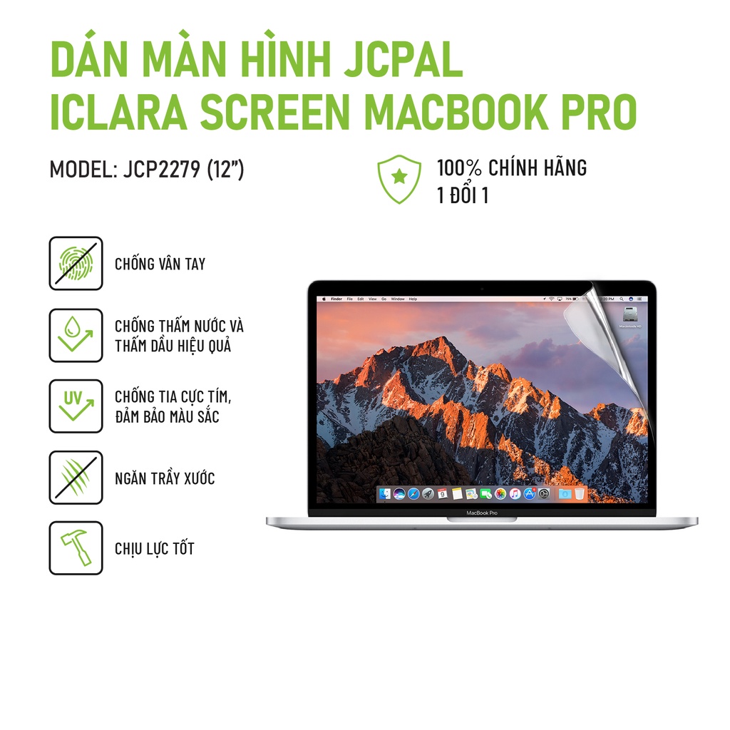 Máy tính & Laptop > Phụ Kiện Máy Tính > Miếng Dán & Ốp Laptop || Miếng dán màn hình JCPAL Iclara screen Macbook Pro - 12 inch chống ánh chói, bám vân tay tốt, chống thấm nướcCòn hàng