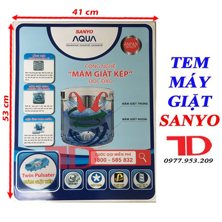 Giới thiệu Miếng dán máy giặt SANYO, tem dán trang trí máy giặt SANYO mẫu 2