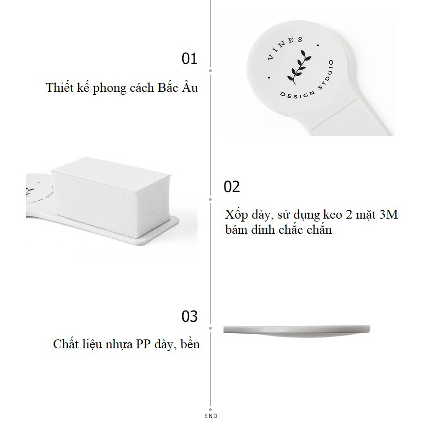 - Chất liệu nhựa sạch sẽ độ bền cao, sử dụng keo dán 3M siêu dính. Sử dụng vô cùng đơn giản, tiện lợi