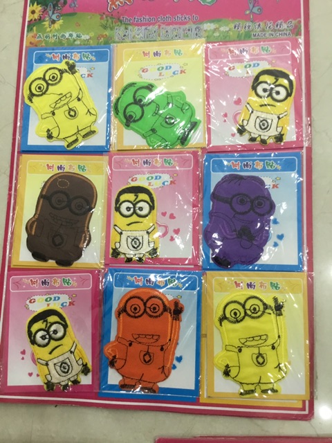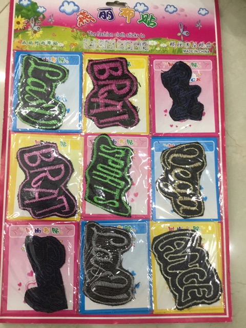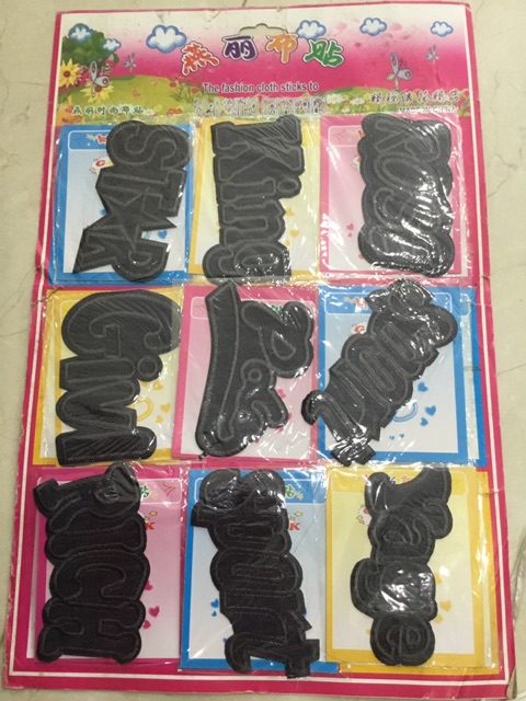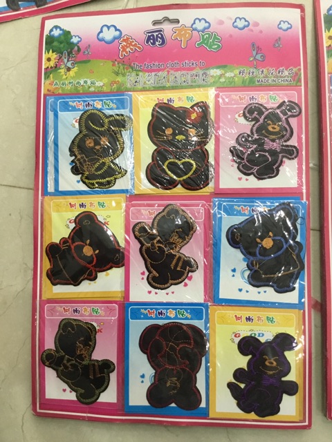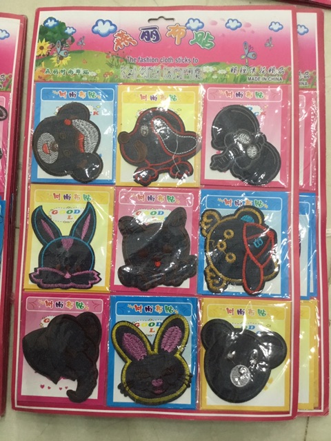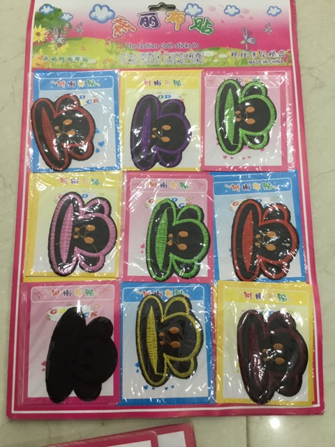 Sản phẩm miếng dán trang trí, hay vá vào quần áo bị rách.1 tờ gồm 9 miếng dán