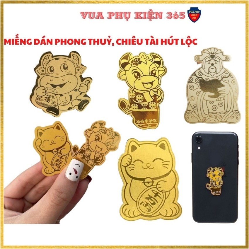 Miếng Dán Phong Thủy MÈO THẦN TÀI, ÔNG THẦN TÀI, TRÂU VÀNG, BÒ VÀNG, HỔ VÀNG Mạ Vàng 24K Chiêu Tài Hút Lộc - SẢN PHẨM DÁN ĐƯỢC✅ Cửa hàng bán phụ kiện điện thoại Chính hãng giá tốt nhất tại Sài Thành: " Vua Phụ Kiện 365 - Ở đây, chúng tôi bán Sự Tử Tế "