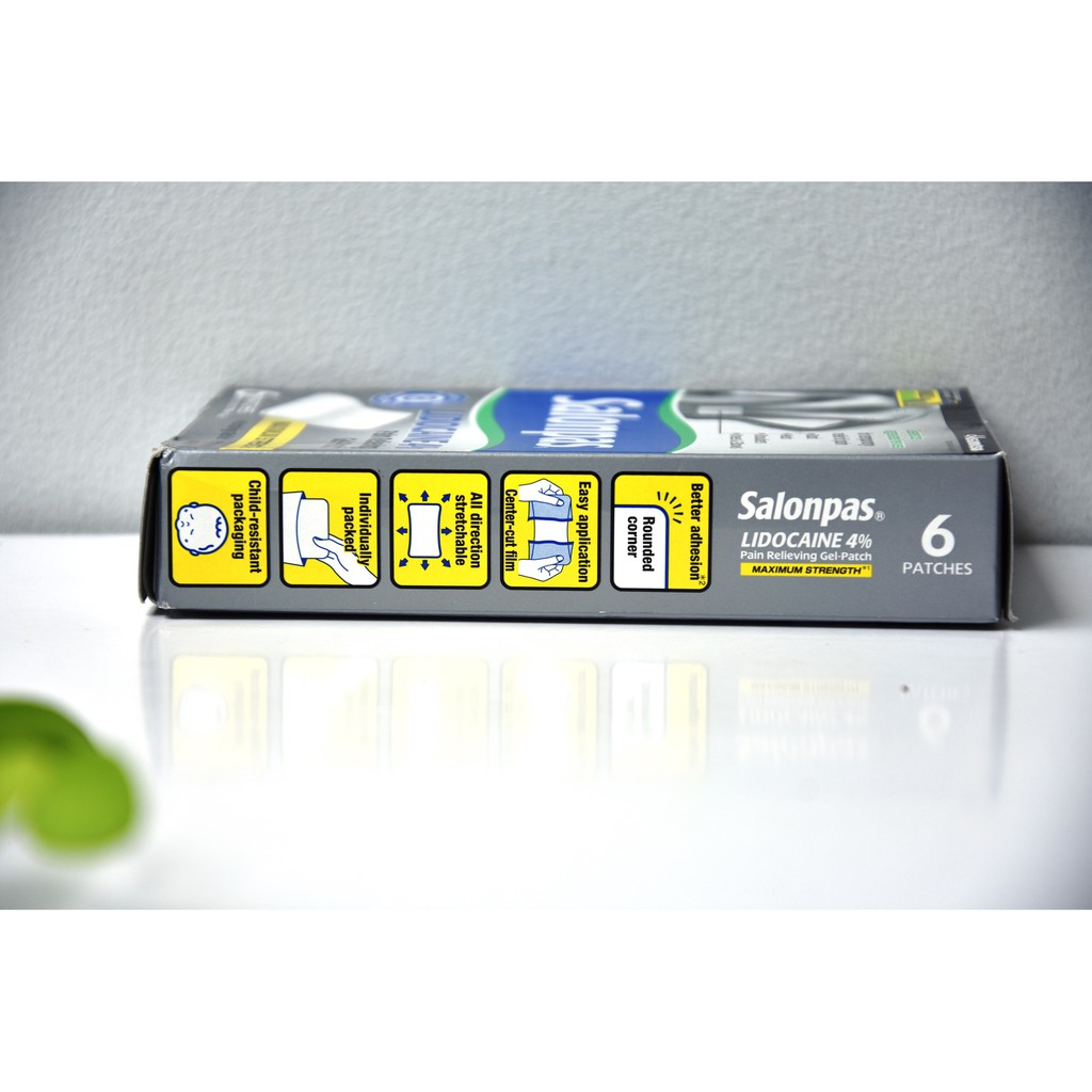 Nhà cửa & Đời sống > Chất khử mùi, làm thơm nhà > Khác || Miếng dán Salonpas® Lidocaine 4% Pain Relieving Gel-Patch 6 miếngCòn hàng