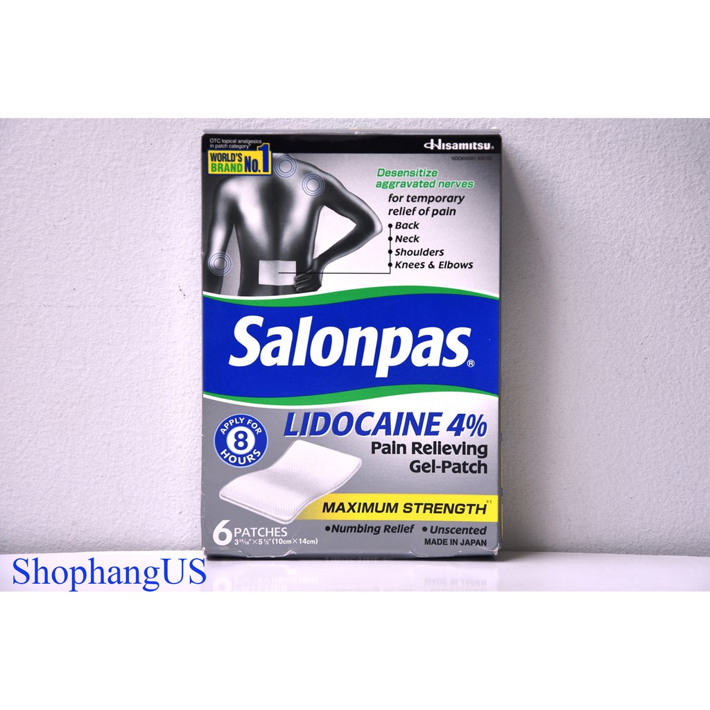 Cao dán Salonpas Lidocaine 4% thuộc tập đoàn Hisamitsu Nhật BảnPain Relieving Gel-Patch