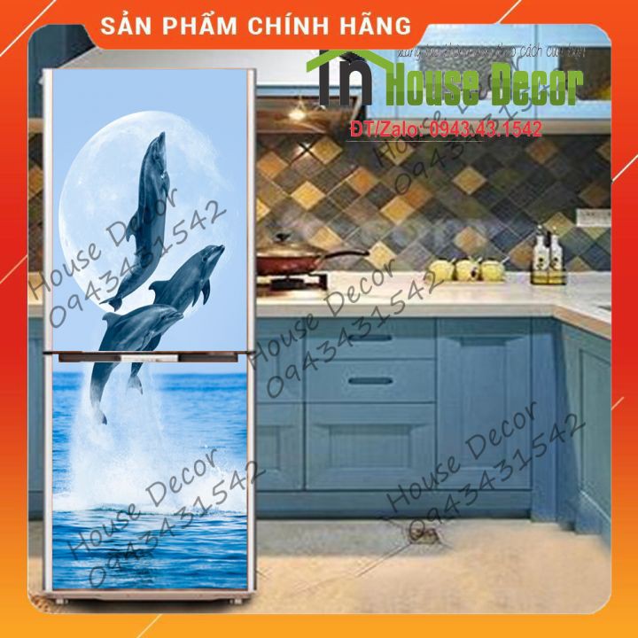 Tranh Dán Tủ Lạnh Chống Thấm Nước - Phù Hợp Mọi Loại Tủ - Cá Heo Nhảy MúaSHOP CHUYÊN SỈ LẺ DECAL DÁN TƯỜNG 3D, DECAL TỦ LẠNH
