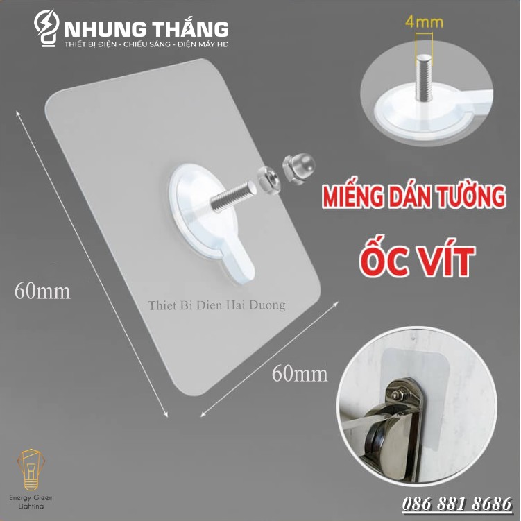 Miếng Dán Tường Kèm Ốc Vít Để Treo Đồ/ Gắn Giá, Kệ/ Dán Thanh Chắn Chắn - Chịu Lực Tốt - Không Cần Khoan Tường