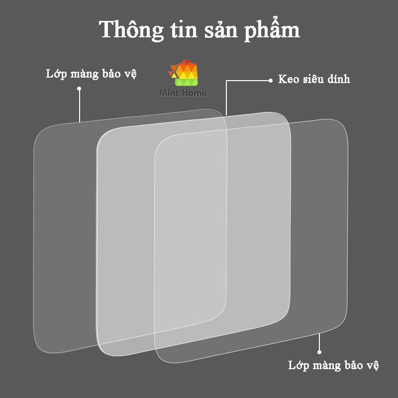 Miếng dán tường keo trong suốt 2 mặt dán tranh ảnh, dự phòng cho kệ remote, kệ góc nhà tắm, kệ treo tường chịu lựcChịu lực cao.