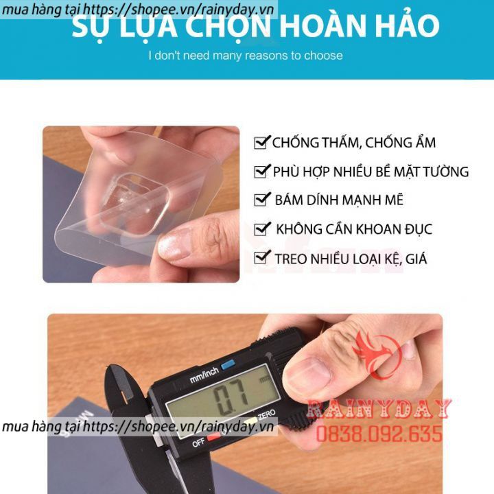 -KHÔNG TRƯỢT: Khả năng giữ chắc chắn và không trượt lên đến 15kg. Không khoan, không vít, không lỗ, không keo.