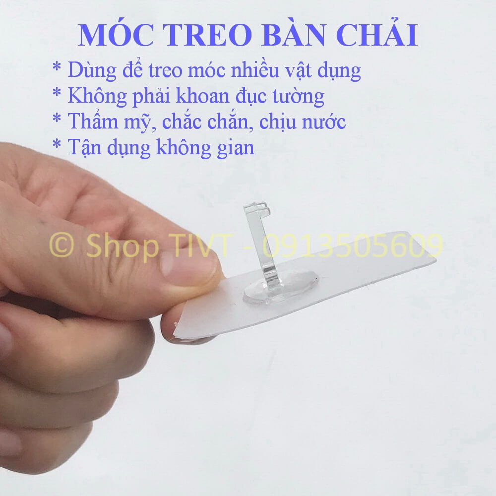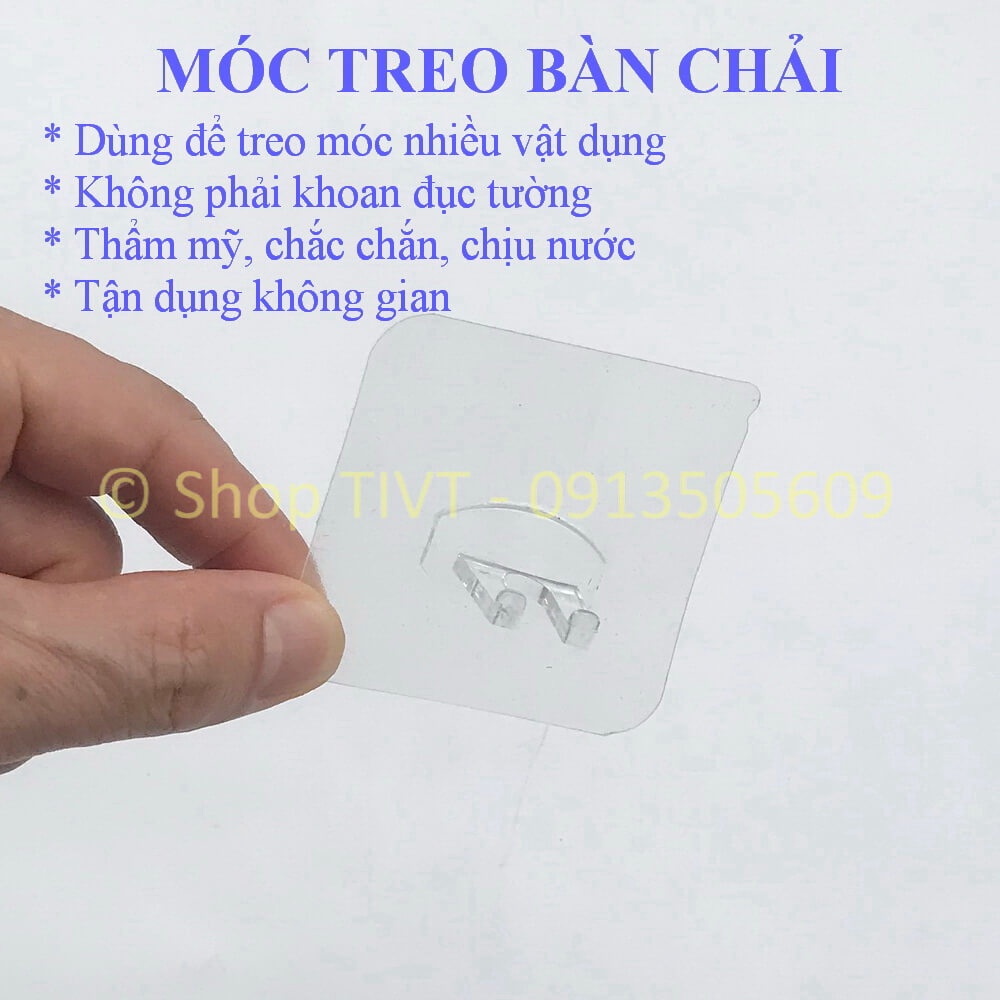 Miếng dán có móc treo bàn chải là một vật rất hữu dụng trong gia đình. Móc treo có thể chịu được vật nặng tới 5kg. Trong gia đình, đặc biệt các khu vực nhà tắm, nhà vệ sinh, nhà bếp có rất nhiều đồ vật cần treo để tiết kiệm diện tích, để giữ cho sạch sẽ, để lấy dùng cho tiện. Miếng dán này giúp không gian trở nên gọn ghẽ hơn, tiện dụng hơn mà không cần đục, khoan tường để bắt vít như trước kia.Miếng dán có độ bám dính cao, chống nước, bề mặt lý tưởng là gạch men, gương kính, tấm ốp nhựa, nhôm và nói chung các mặt phẳng có độ nhẵn cao.
