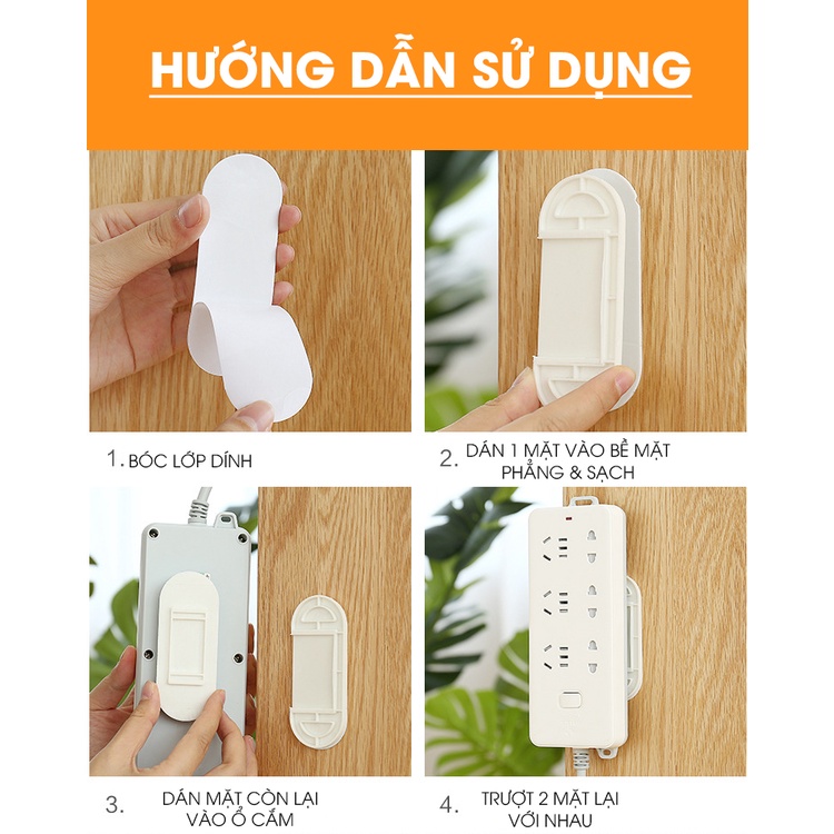 -Sử dụng miếng dính 2 mặt có sẵn, dán rồi ấn mạnh & miết đều vào ổ điện và chỗ cần dán