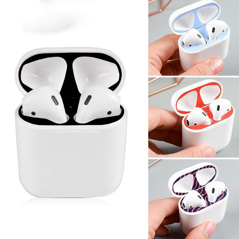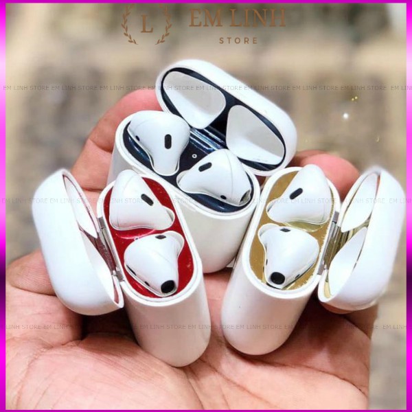 Bộ dán tai nghe Airpods gồm:+ Miếng dán kim loại tùy chọn màu sắc