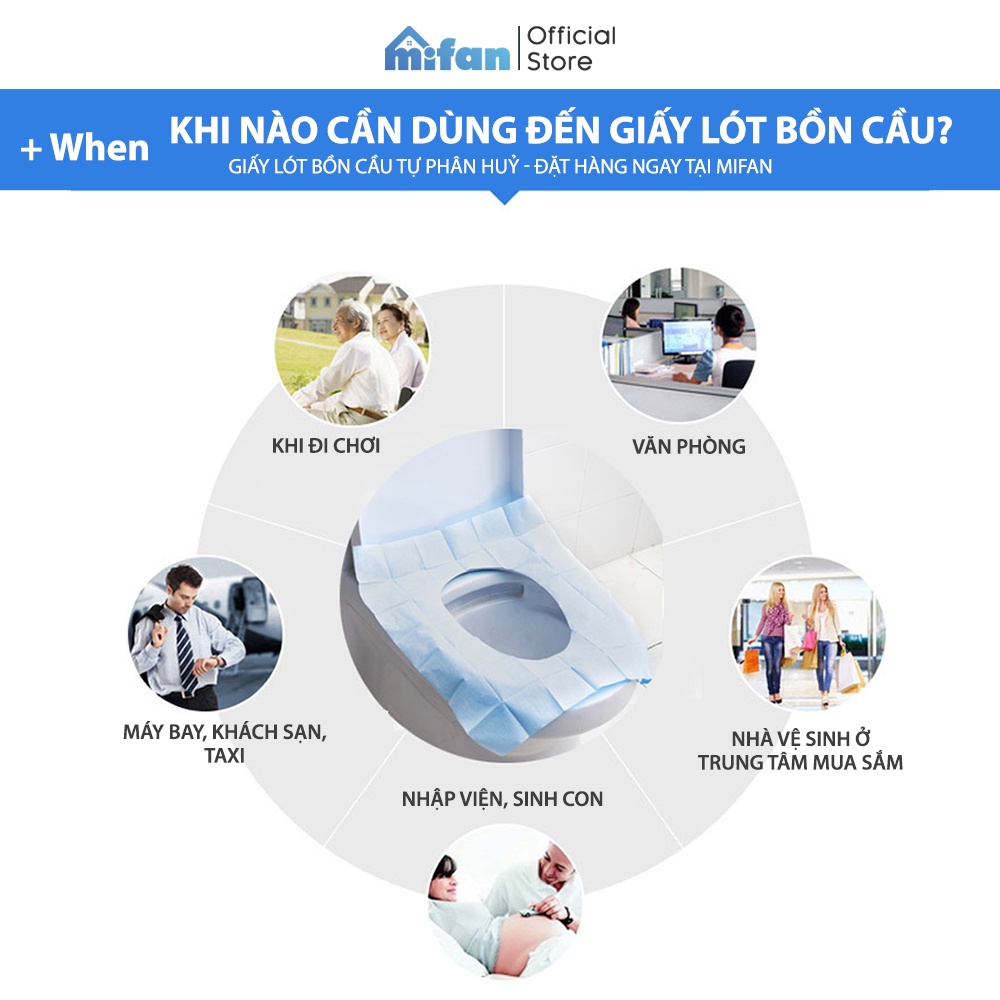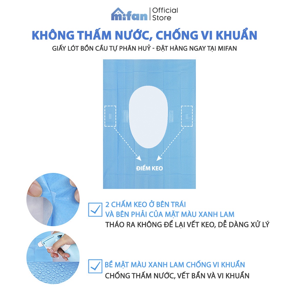 Giới thiệu Miếng Giấy Lót Bồn Cầu Tự Phân Hủy MIFAN - 10 miếng/set - Chống Thấm Nước, Dính Chắc Chắn - Nhỏ Gọn, Vô Trùng, Sạch Sẽ
