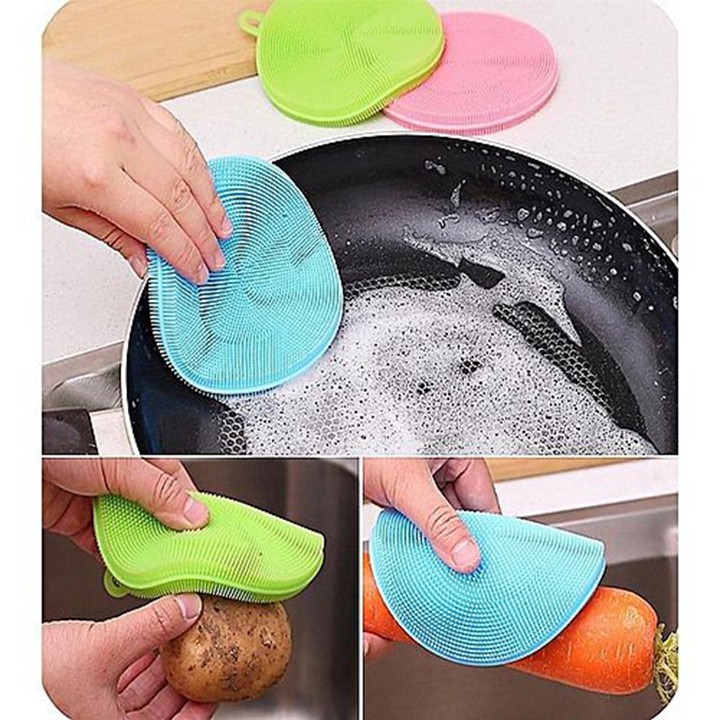 Miếng giẻ rửa chén bát silicon kiêm lót tay lau chùi siêu sạch chống khuẩn