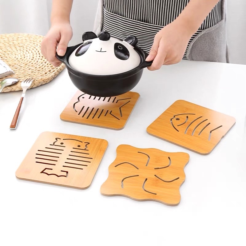 Giới thiệu Miếng Gỗ Lót Nồi Cách Nhiệt Decor Nhiều Hình, Phụ Kiện Bàn Ăn Cam Homeware