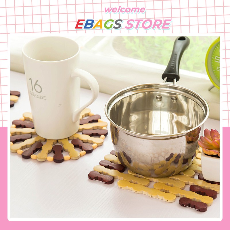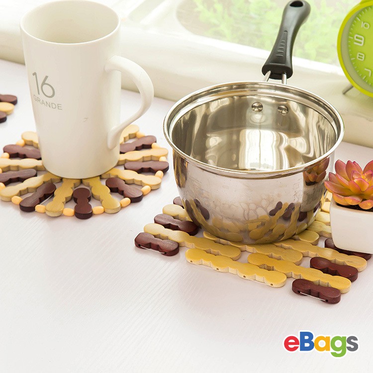 Miếng lót nồi trúc kết xinh xắn góp phần làm đẹp không gian bếp, bàn ăn. Được gia công hoàn toàn bằng chất liệu gỗ tre, gọn nhẹ, nhưng cứng cáp tuyệt đối.