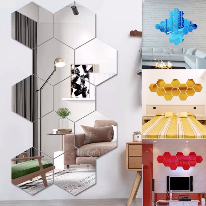 Nhà cửa & Đời sống > Trang trí nhà cửa > Gương || Miếng Gương dán tường hình lục giác 3D hiệu ứng gương dùng trang trí phòng kháchCòn hàng