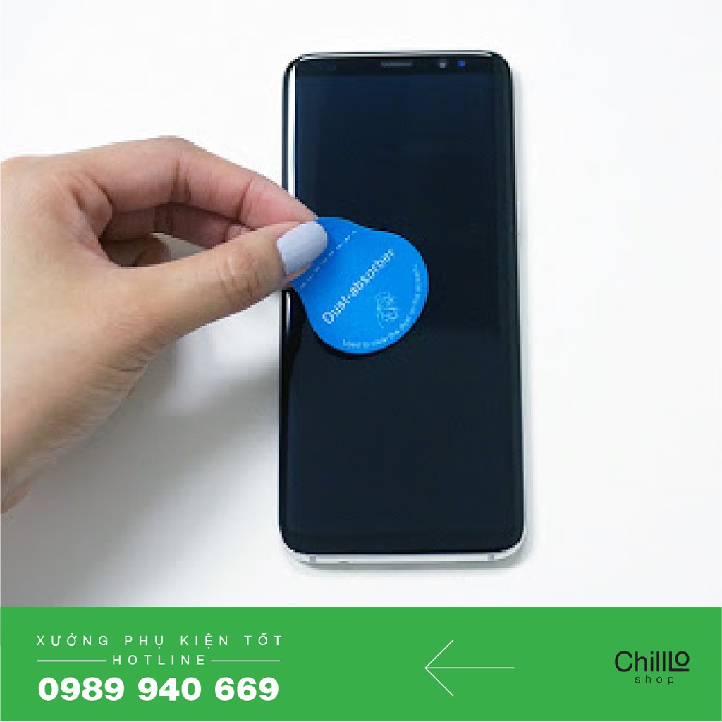 Khi dán kính, nilong vào điện thoại, có thể mình không vệ sinh kĩ, dưới lớp kính mới dán bị bụi, hãy dùng miếng hút bụi để lấy miếng bụi đấy ra nhé.