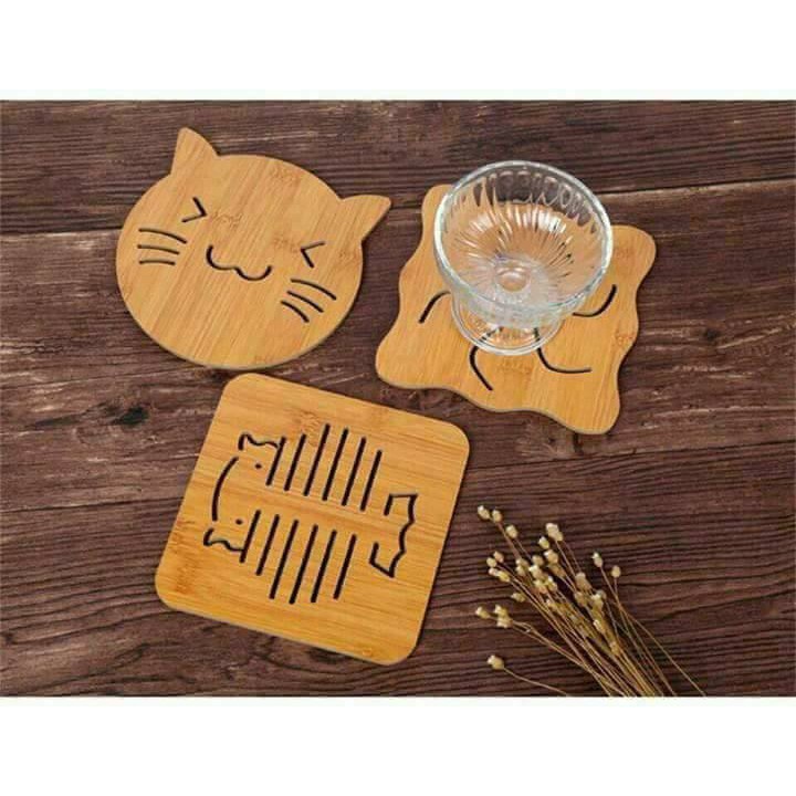 Miếng Kê Ly - Lót Ly Nhỏ Nhiều Hình Bằng Gỗ