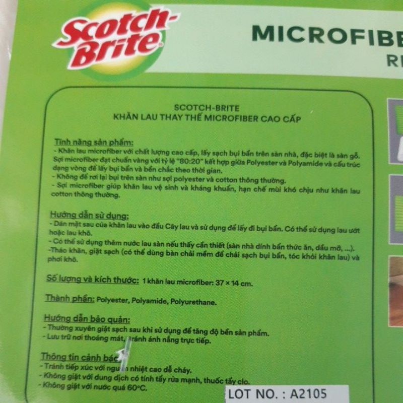 Nhà cửa & Đời sống > Dụng cụ chăm sóc nhà cửa > Khăn vệ sinh || Miếng lau nhà thay thế 3M Scotch-Brite Microfiber Flat Mop 37x14cmCòn hàng