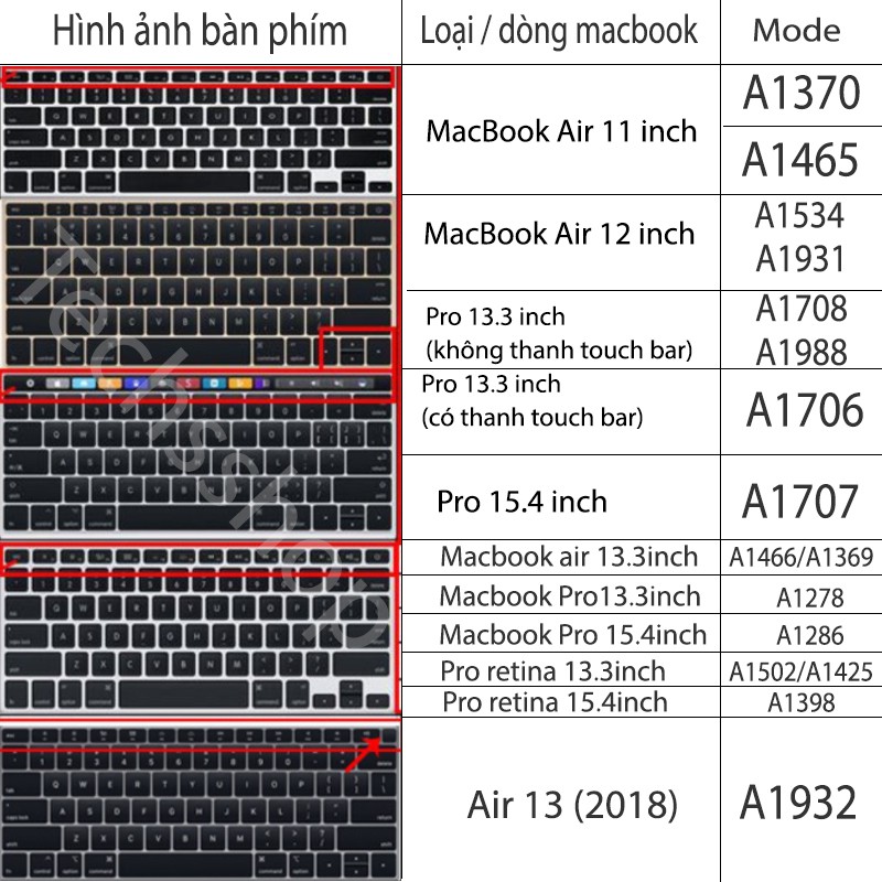 II/ Macbook Retina 12inch & Pro 13 inch (không thanh touch bar) : A1534, A1931, A1708, A1988