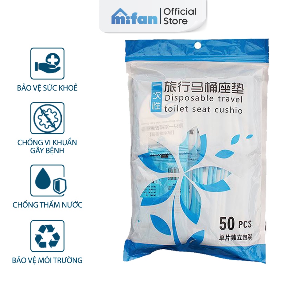 Giới thiệu Miếng Lót Bệt Vệ Sinh Tự Phân Huỷ - Túi 50 chiếc - Nhỏ Gọn, Tiện Lợi, Vô Trùng, Sạch Sẽ, Không Thấm Nước - MIFAN