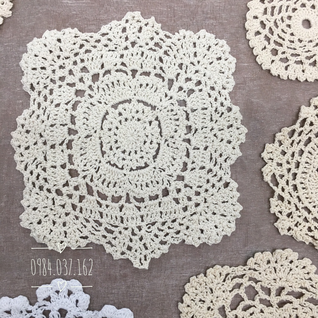 Miếng Lót Bình Hoa Lọ Hoa Thủ Công Hình Vuông - Miếng Lót Trang TríMiếng lót bình sử dụng để trang trí và làm phụ kiện chụp ảnh. Miếng lót được móc kim thủ công nên kích thước các miếng lót cũng sẽ có sự xê dịch.