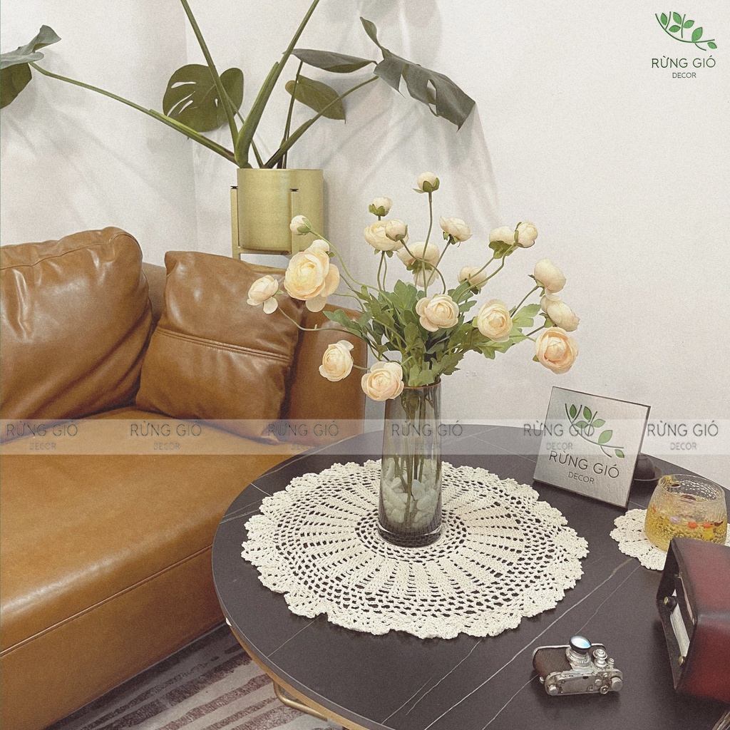 Miếng Lót Bình Hoa SIZE TO bằng ren trang trí bàn ăn, làm việc, phòng khách