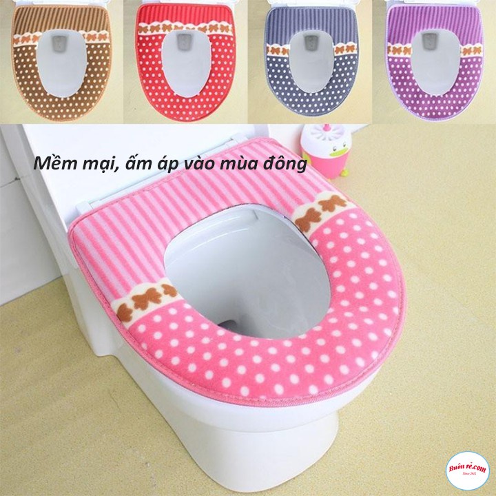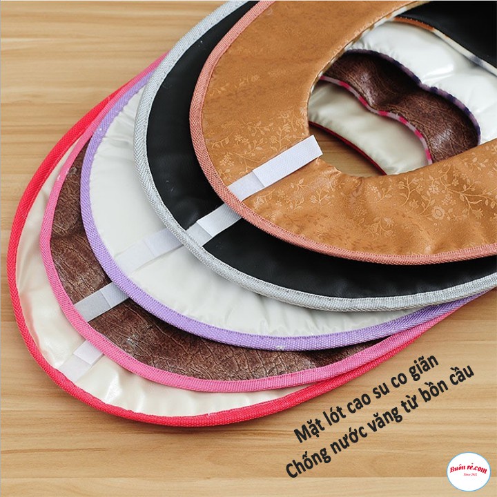 - Chất liệu vải bông, khung cao su co giãn, dễ vệ sinh, phòng tránh vi khuẩn & giữ ấm bồn cầu trong mùa lạnh