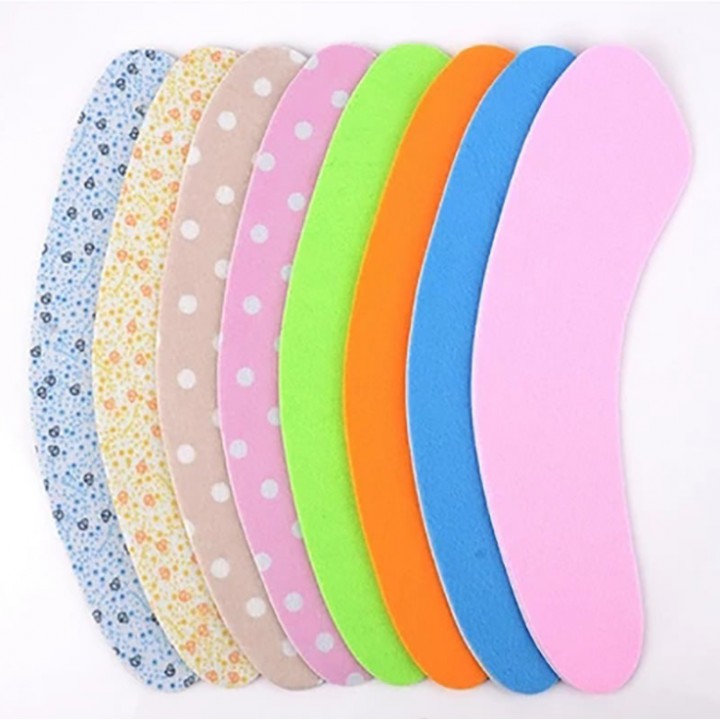 Sản phẩm gồm 02 miếng dán được làm bằng nỉ. Ở mặt sau của tấm lót có gắn miếng dán để cố định vào mặt bồn cầu giúp miếng lót không bị rơi ra ngoài hay trôi trong quá trình sử dụng.
