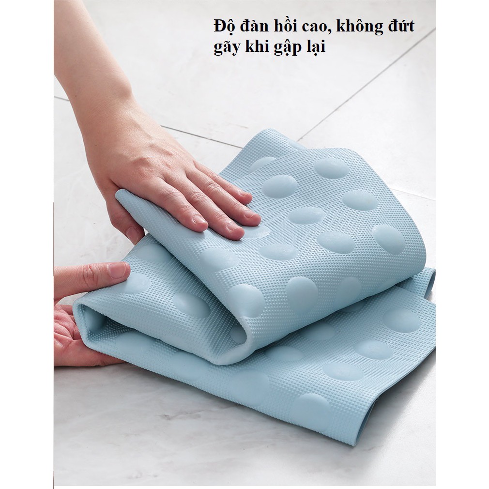 🍒Chất liệu CAO SU PVC nên rất êm ái độ bền cao, không mùi, mềm dẻo, không bị nứt gãy khi gập, chịu nhiệt khi tắm nước nóng, độ đàn hồi cao, không bị biến dạng khi gập