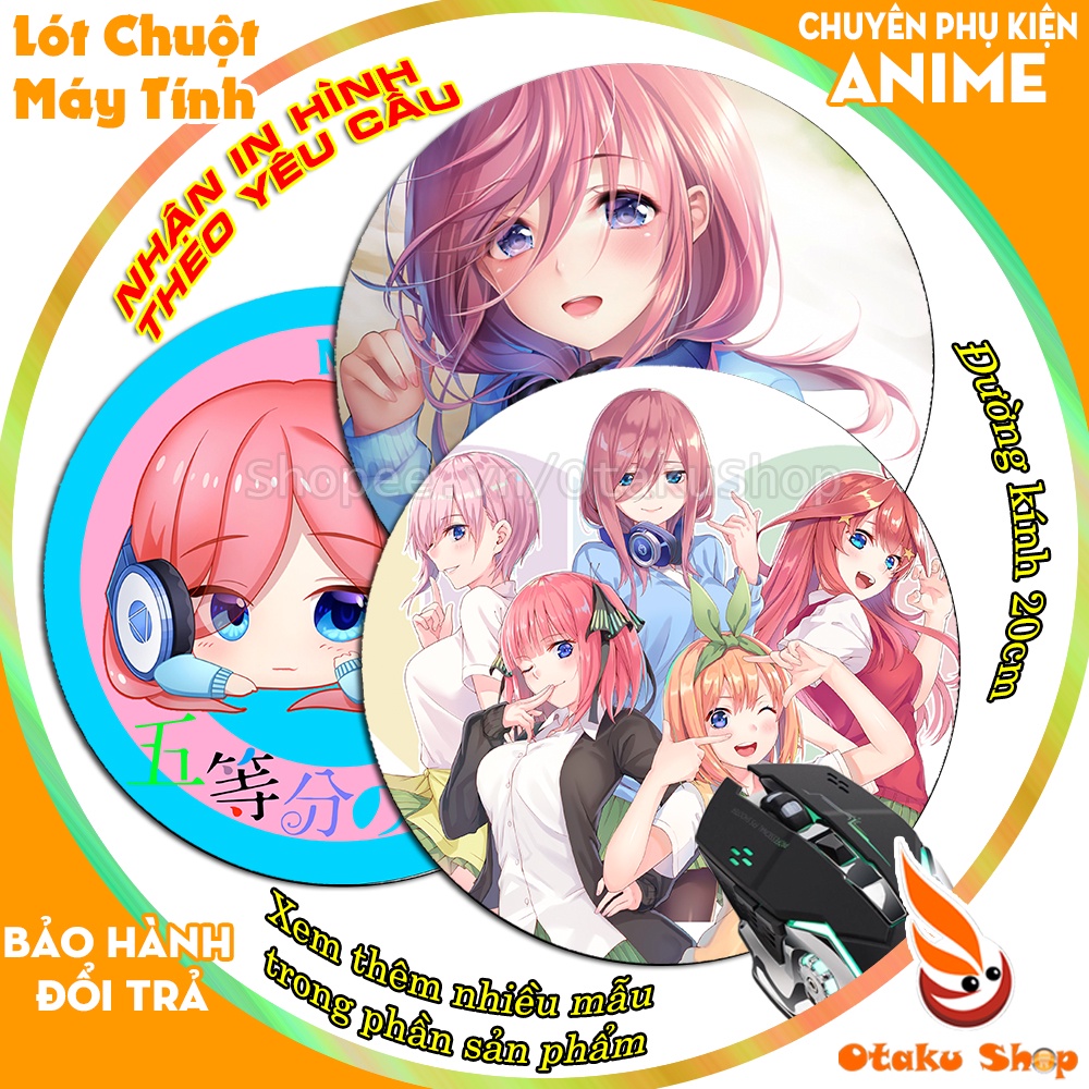 Miếng lót chuột Anime Gotoubun no hanayome kích cỡ tròn 200 x 200mm dùng di chuột máy tính chơi game chuyên dụng
