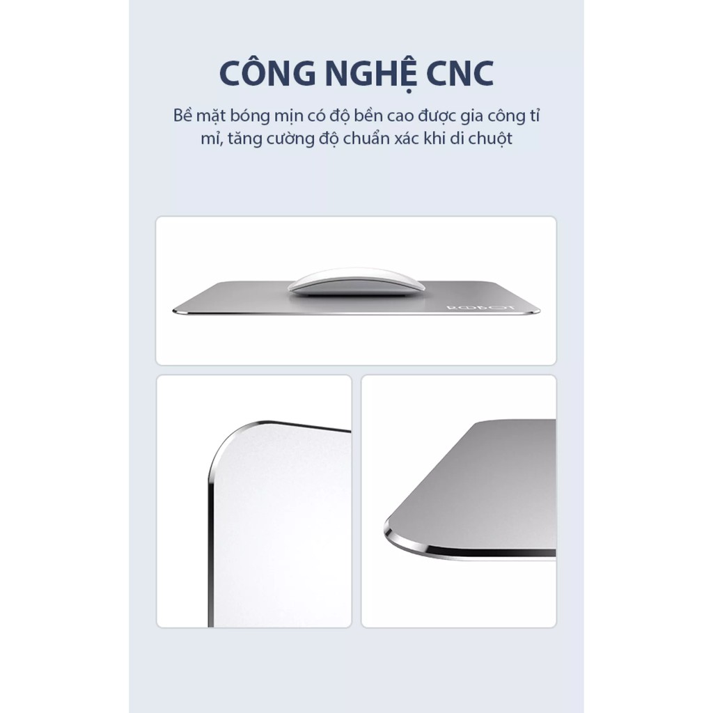 - Tấm lót chuột được phủ bề mặt bằng chất liệu hợp kim nhôm, bề mặt xử lí bóng mịn giúp cho thao tác chuột thoải mái mượt mà.