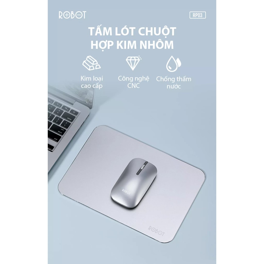 Miếng Lót Chuột Bằng Hợp Kim Nhôm Cao Cấp Robot RP03 Sử Dụng Được 2 Mặt Miếng Lót Chuột Chơi Game Mỏng Chống Trượt